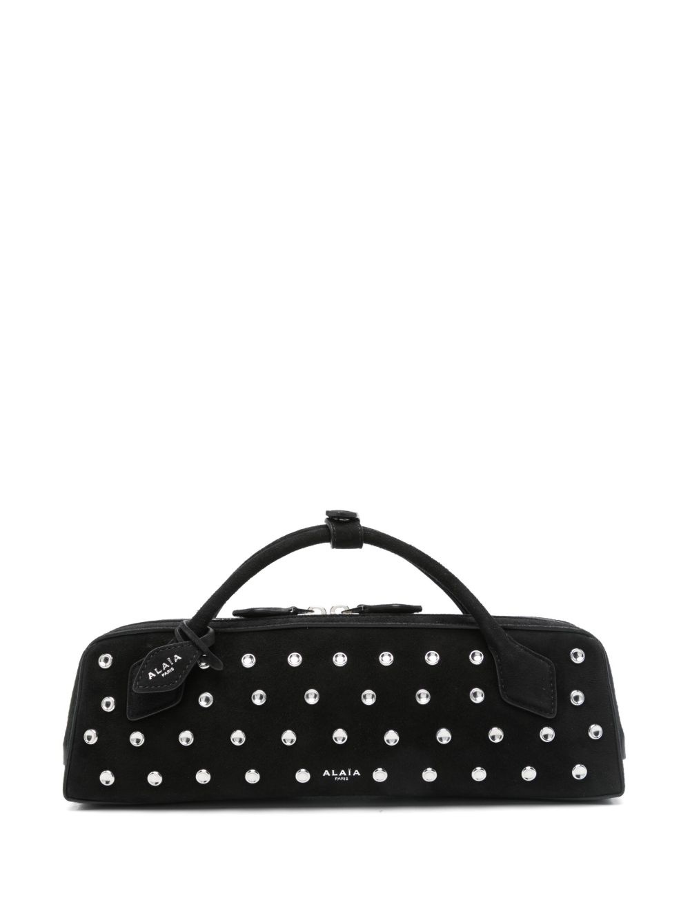 Le Teckel tote bag Highlights - Black - Two-way zip fastening - Two rolled top handles - Stud embellishment - Main compartment Imported Composition Outer: Brass 100%, Calf Suede 100% SIZE & FIT Model measurements Height 5 ft 10 in(1.78 m) Bust/Chest 31.49 in(80 cm) Hips 37 in(94 cm) Waist 23.62 in(60 cm) Measurement DEPTH 2.75 in(7 cm) HANDLE 2.36 in(6 cm) HEIGHT 3.54 in(9 cm) WIDTH 12.2 in(31 cm)