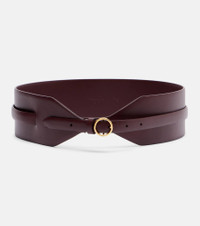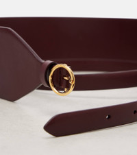 Round off designs with body-contouring pieces such as this belt from Alaia. This design is cut from glossy leather into an oversized silhouette with a gold-toned buckle for fastening. Product Details - Material: calf leather - Lining: calf leather - Made in Italy - Designer color name: Rouge Grenat - Item color: burgundy - Closure: buckle fastening - Hardware color: gold - Item number: P01058165 Size & Fit - Buckle width 2cm-1" - Min. width 1,5cm-0.5" - Max. width 6cm-2.5"