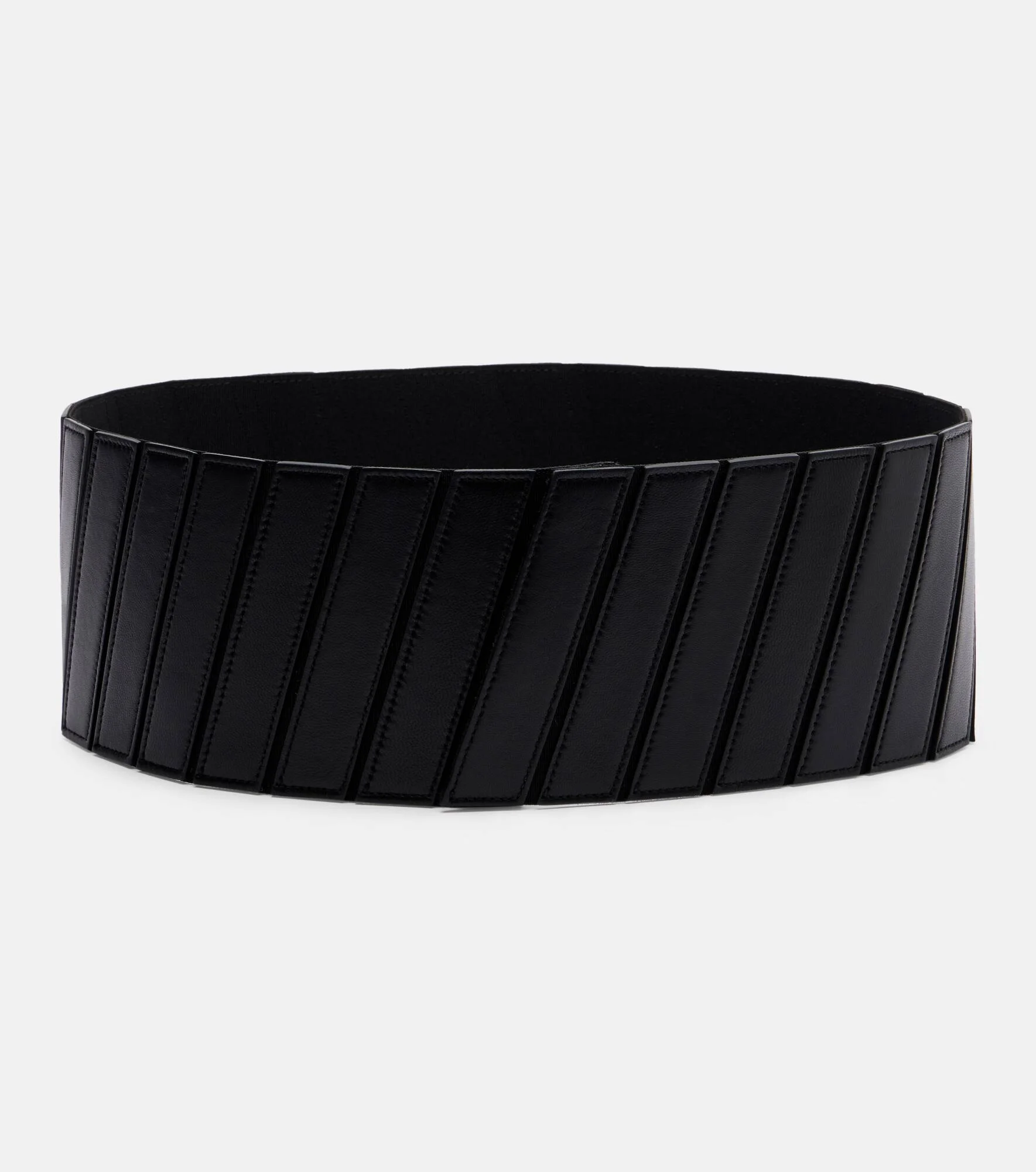 Sophistication and masterful construction define Alaia's creations, including this wide belt. The style is built with panels of supple leather and features an elasticated design. Product Details - Material: leather - Lining: leather - Made in Italy - Color: black - Designer color name: Noir - Closure: VELCRO® fastening - Includes: dust bag, box - Item number: P01115366 Size & Fit - Width 10cm-4" - Elasticated band