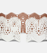 Make this white corset belt from Alaïa the focal accent of refined looks. It's made in Italy from lazer-cut calf leather and fastens via silver-tone press studs. - material: calf leather - buckle fastening - Made in Italy