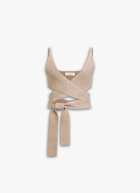 Criss cross tied top in goat suede Sleeveless design, thin shoulder straps, plunging neckline Cropped cut Made in Italy DETAILS MAIN MATERIAL : 100% GOATSKIN LEATHER PRODUCT REFERENCE : AA9H1263L017B - 120