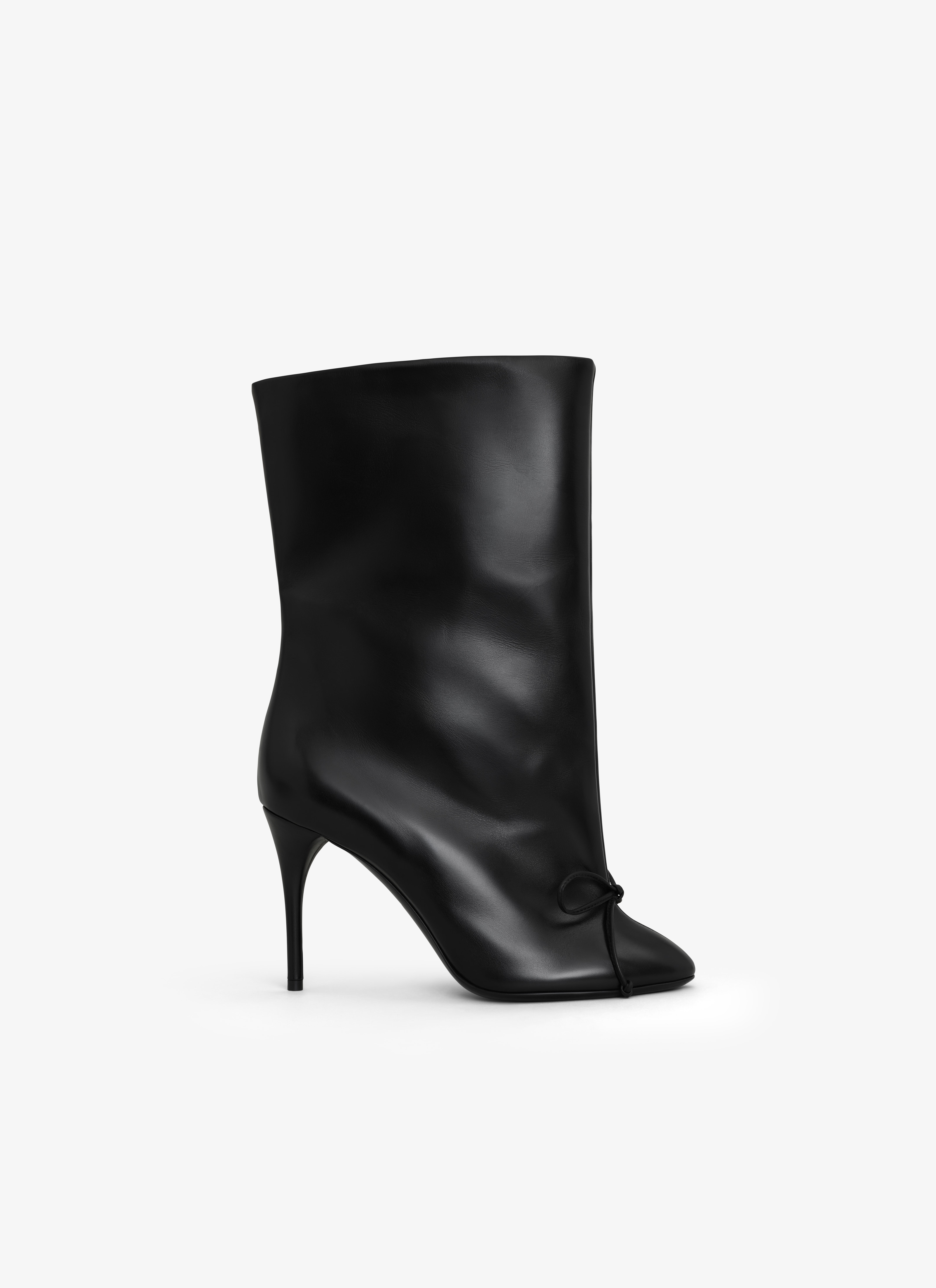 Heel low boots Adorned with a knot on the front 90mm heel 22cm shaft Made in Italy DETAILS MAIN LINING: 100% LAMBSKIN SOLE: 95% CALF LEATHER 5% RUBBER UPPER MATERIAL 1: 100% CALF LEATHER PRODUCT REFERENCE: AA3B096CK122 - 999