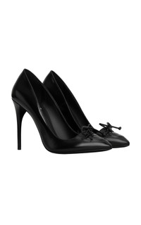 Founded by Azzedine Alaia, today the maison, under the direction of Pieter Mulier, continues the revered couturier's uncompromising vision which champions masterful cuts that accentuate the female form. The house is perhaps best known for its statement bags, edgy footwear, and laser-cut accessories. These lustrous leather pumps have a sleek, pointed-toe silhouette detailed with loafer piping and a bow along the front. PRODUCT DETAILS - Heel height measures approximately 90mm/ 3.55" - Slip on - Composition: leather - Made in Italy