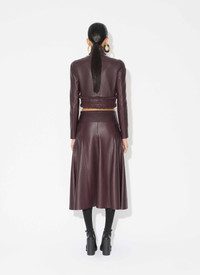 Slit skirt in lambskin Low waist, mid-length, front seam pockets A-line cut Made in Italy DETAILS MAIN MATERIAL : 100% LAMBSKIN LEATHER PRODUCT REFERENCE : AA9J2371L024B-350