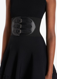 Stretch corset belt with three buckles; hugs the waist; all-around elastic offers maximum comfort and ease. Dimensions (cm) : h 14 Made in Italy DETAILS COMPOSITION: 100% CALF LEATHER ADDITIONAL MATERIAL: 72% POLYAMIDE, 28% ELASTHANNE LINING: 100% LAMBSKIN PRODUCT REFERENCE: - 999
