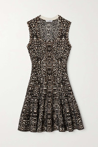 EDITORS'NOTES Alaïa's mini dress effortlessly sculpts your frame. Patterned with leopard spots (a brand signature since the early '90s), it's knitted for a close fit through the bodice and has a flouncy hem that holds its shape beautifully. Add one of the label's laser-cut belts to further accentuate your waist. SIZE & FIT Alaïa follows a new size guide. Please refer to size and fit information below. - Fits true to size, take your normal size - Designed to be fitted at the bust and waist, loose at the hip - Mid-weight, stretchy fabric - Model is 177cm/ 5'10" and is wearing a FR 36 DETAILS & CARE - Black, ivory and brown jacquard-knit - Concealed zip fastening along side - 73% viscose, 20% polyamide, 5% polyester, 2% elastane