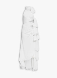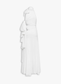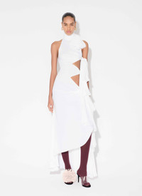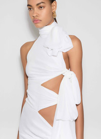 Bow sleeveless asymmetrical dress in fluid light georgette Maxi length, high tie neck, side cut-out Fitted cut Made in Italy DETAILS MAIN MATERIAL : 100% VISCOSE PRODUCT REFERENCE : AA9R2772T666B-000