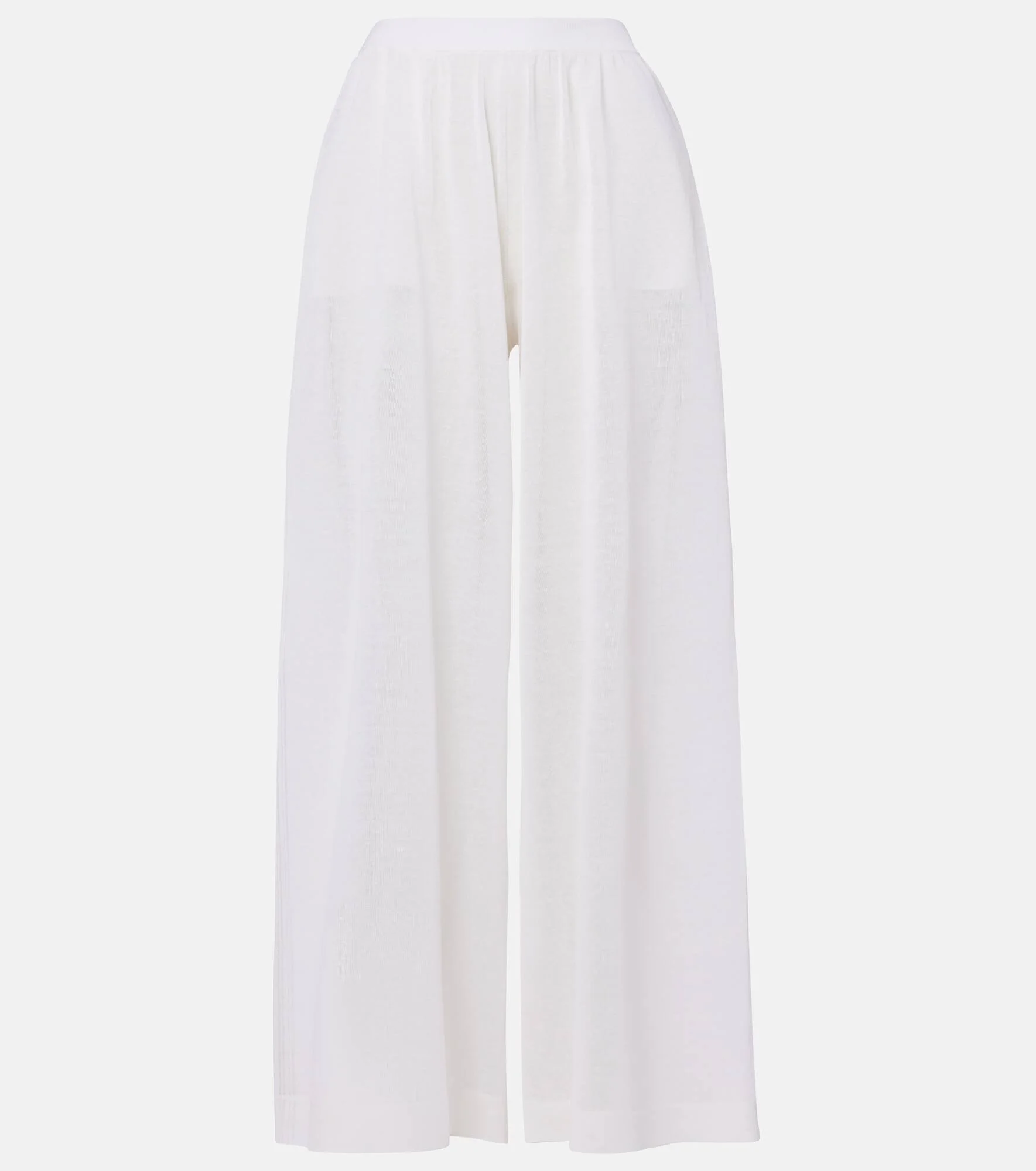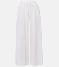 These Alaia wide-leg pants are crafted in Italy from a breathable blend of linen and silk, perfect for warm-weather days. Designed with a flowing, fluid silhouette, this pair features an elasticated waistband for added comfort. Product Details - Material: 90% linen, 10% silk - Care instructions: dry clean - Made in Italy - Designer color name: Blanc - Item color: white - Trim: 85% linen, 9% silk, 5% polyamide, 1% elastane - Pockets: side slit pockets - Elasticated waistband - Fit: wide-leg - Item number: P01047463 Size & Fit - True to size - Elasticated waist - Non-stretchy fabric - Wide-leg - High-waisted - The model seen in the picture is 178cm-5'10", cup size %cupsize%, and wearing a size FR 36