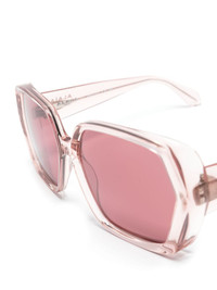 hexagon-frame sunglasses Highlights - Light pink - Acetate - Transparent design - Pink tinted lenses - Straight arms - Curved tips - These glasses come with a protective case. Made In Italy Composition Acetate 100% SIZE & FIT Measurement Arm Length 5.31 in(13.5 cm) Bridge Width 0.66 in(1.7 cm) Lens Diameter 2.36 in(6 cm) Total Width 5.9 in(15 cm)