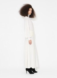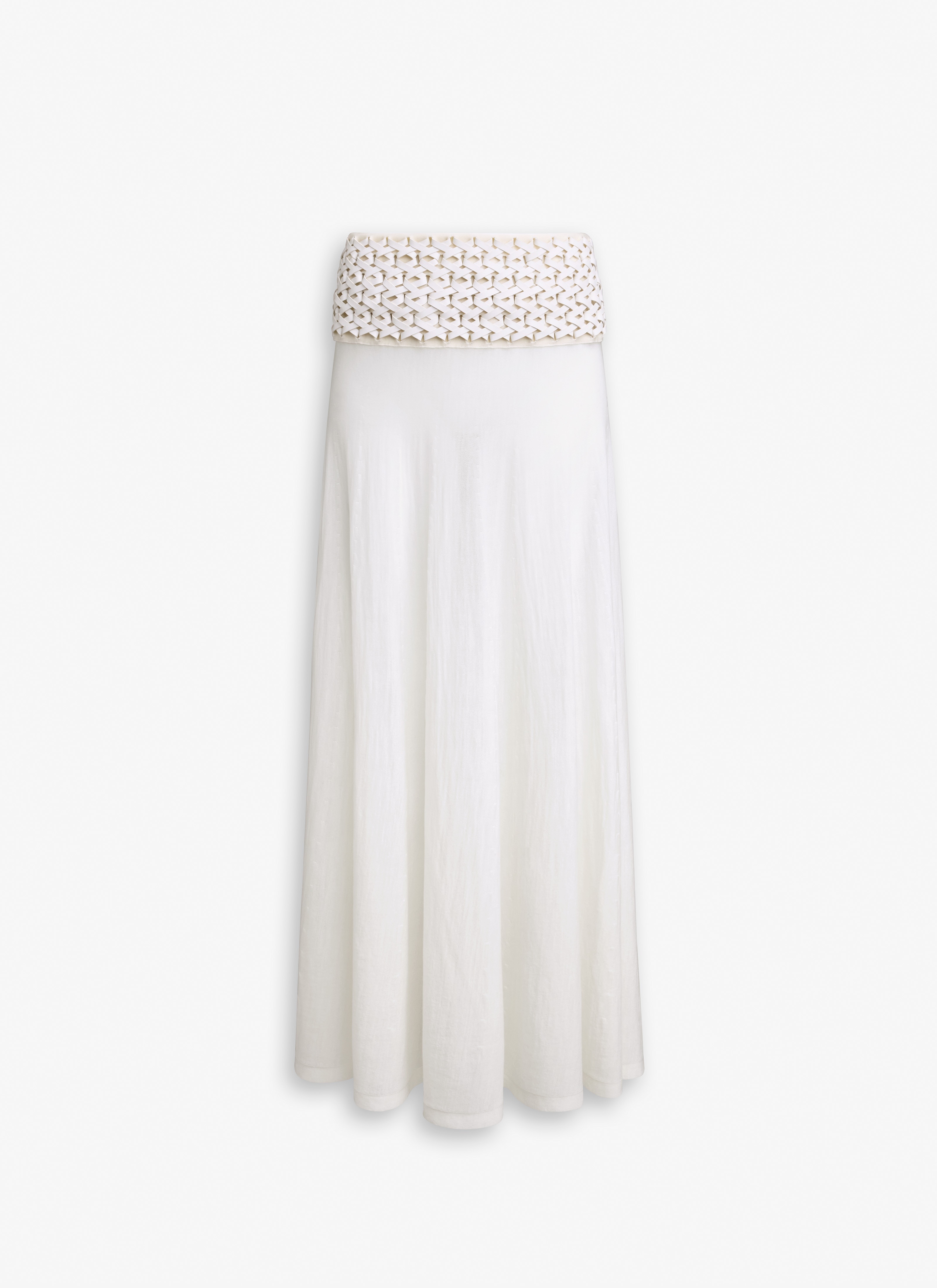 Long fluid knitted skirt Flared cut Low-rise waist, matching woven leather belt, sheer and flowing knit Made in Italy DETAILS COMPOSITION: 96% WOOL, 4% POLYAMIDE BELT: 100% LAMB LEATHER PRODUCT REFERENCE: AA9J2254K004A - 054