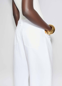 Round jeans in white denim Low waist, curved leg, hardware denim buttons, tonal topstitching details, five pockets Signature dart topstitching details at the back Made in Italy DETAILS MAIN MATERIAL : 100% COTTON PRODUCT REFERENCE : AA9P1215D002B - 000
