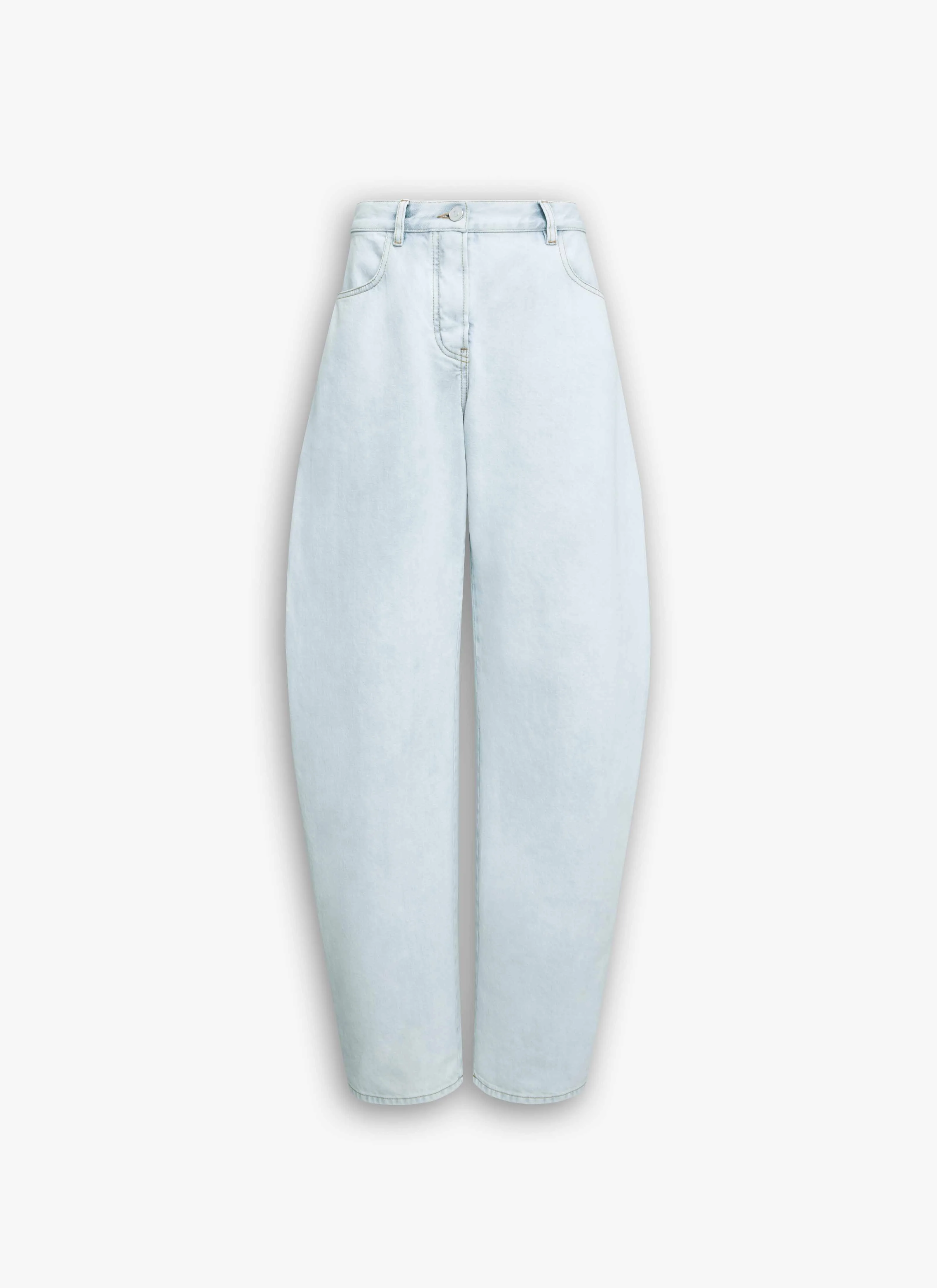 Round jeans in ice denim Low waist, curved leg, hardware denim buttons, contrasted tobacco-coloured topstitching details, five pockets Signature dart topstitching details at the back Made in Italy DETAILS MAIN MATERIAL : 99% COTTON 1% POLYURETHANE PRODUCT REFERENCE : AA9P1215D005B - 523