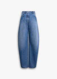 Round jeans in deep stone denim Low waist, curved leg, hardware denim buttons, contrasted tobacco-coloured topstitching details, five pockets Signature dart topstitching details at the back Made in Italy DETAILS MAIN MATERIAL : 99% COTTON 1% POLYURETHANE PRODUCT REFERENCE : AA9P1215D006B - 505