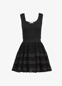 Sleeveless crinoline skater dress, scoop neck, re-interpretation in lurex, volume exploding from the wiast in three dimensional stitches, carry-over shape. Made in Italy DETAILS COMPOSITION: 61% WOOL, OVIS ARIES, 31% VISCOSE, 8% METALLIZED FIBER PRODUCT REFERENCE: AA9R22463M784 - 956