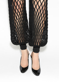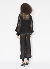 Macrame openwork knit pants Wide leg Wide low-rise waistband, ribbed knit hems, gathered ankles Made in Italy DETAILS COMPOSITION: 65% VISCOSE, 25% POLYESTER, 6% LINEN, 3% POLYAMIDE, 1% ELASTANE BOTTOM LEG: 72% VISCOSE, 24% POLYESTER, 4% POLYAMIDE PRODUCT REFERENCE: AA9P1146K003A - 995