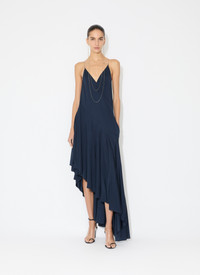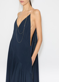Bias-cut slip dress in matte jersey with thin chain straps Plunging neckline, scoop back, asymmetric length Fit and flare cut Made in Italy DETAILS MAIN MATERIAL: 81% VISCOSE 19% POLYAMIDE CHAIN: 100% BRASS PRODUCT REFERENCE: AA9R2588J077A - 559
