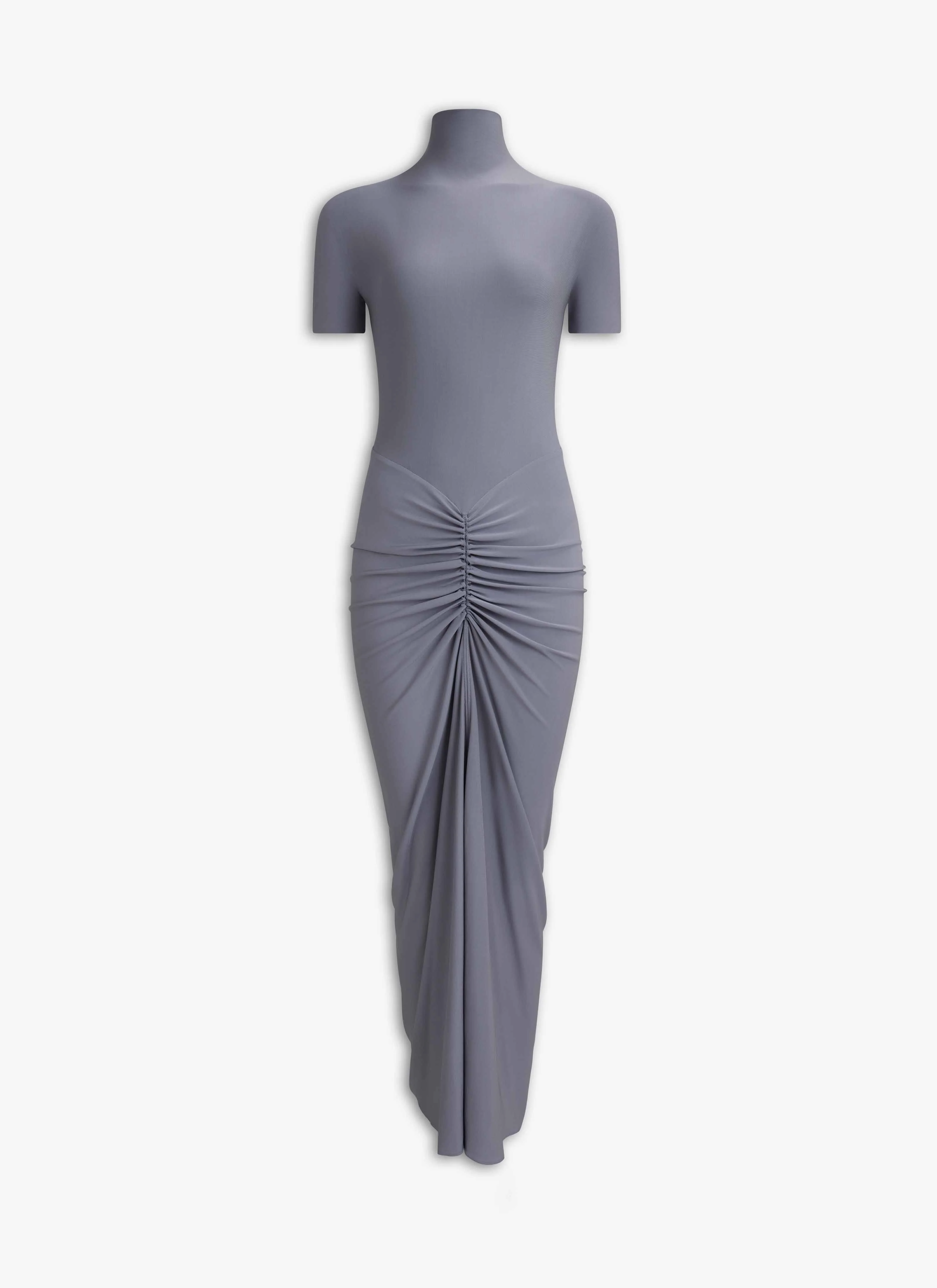 Draped bodycon dress in soft jersey High neck, maxi length, short sleeves, gathered draped waist Back zipper closure Made in Italy DETAILS MAIN MATERIAL : 96% VISCOSE 4% ELASTANE PRODUCT REFERENCE : AA9R2726J050B - 859