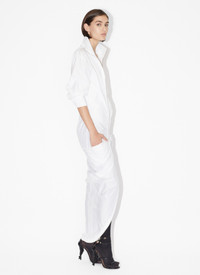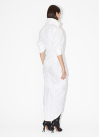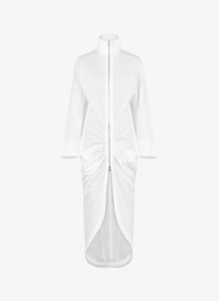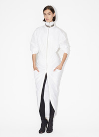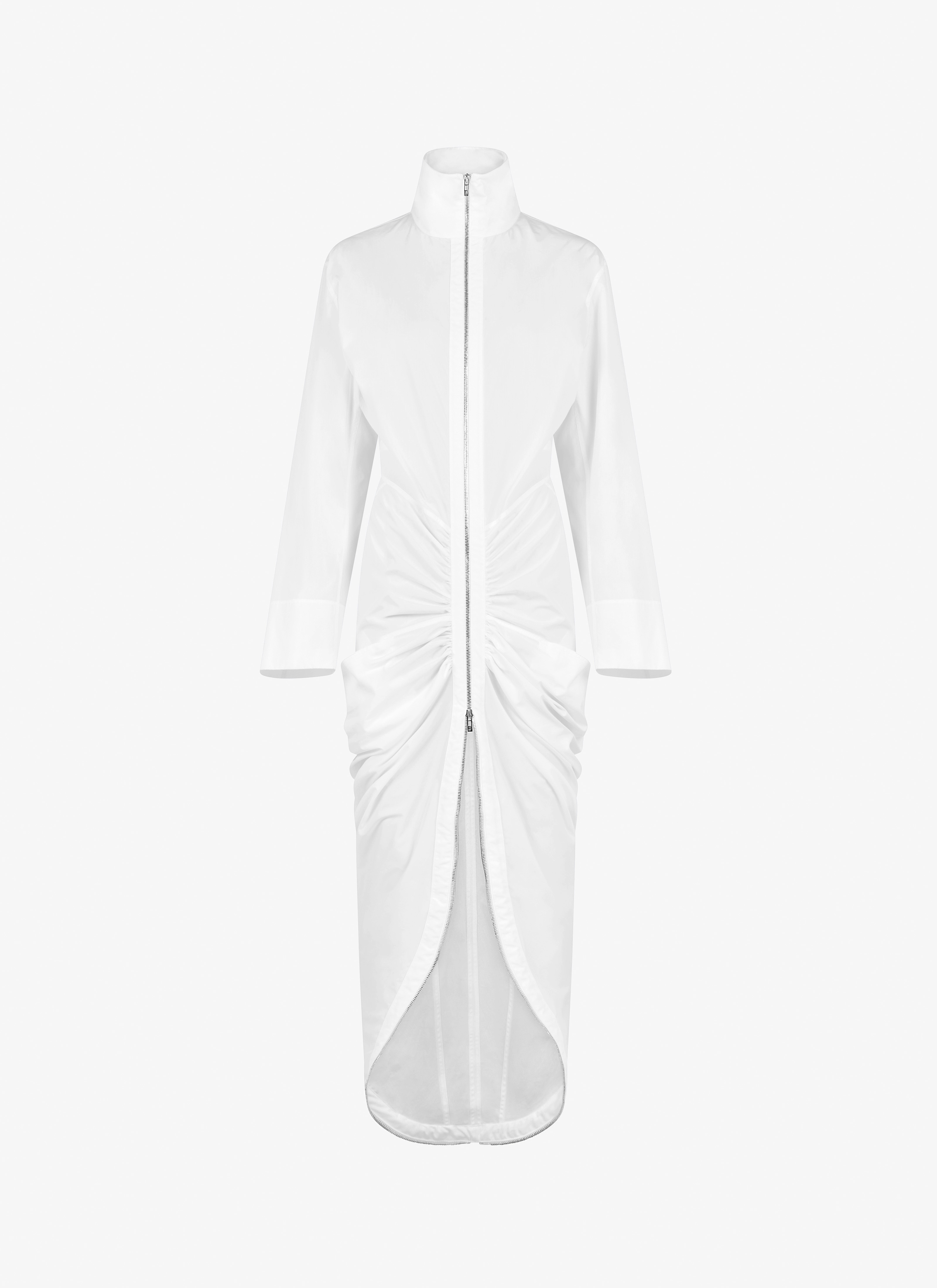 Maxi poplin dress, large high collar, front zip opening, gathered waist panels that drape into the skirt, center slit opening. Made in Italy DETAILS COMPOSITION: 75% COTTON, 25% POLYESTER PRODUCT REFERENCE: AA9R11473T395 - 000