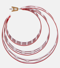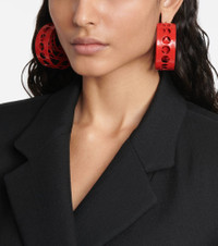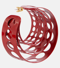 Alaia brings its brand-signature perforations to its accessories edit with these medium-sized hoop earrings. The three-layer design comes in a bold red color, making them the statement piece of any outfit. Product Details - Closure: pin fastening - Made in Italy - Material: brass - For pierced ears - Designer color name: Rouge - Item number: P00688060 Size & Fit - Length 8cm-3" - Width 2,2cm-1"