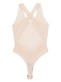 mesh bodysuit Highlights - Beige - Mesh design - Semi-sheer construction - Concealed press-stud fastening - U-neck - Sleeveless - Rear criss-cross straps - High cut - Unlined - Just a reminder that this piece must be tried on over your own garments. Made in Italy Composition Polyamide 86%, Elastane 14% SIZE & FIT FittingInformation Designed for a close fit throughout Made from a lightweight stretch fabric, this piece offers elasticity and flexibility when worn