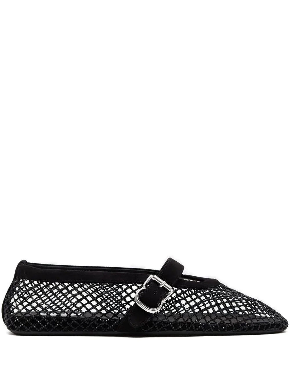 mesh buckle ballet flats Highlights - Black - Suede trims - Buckle strap - Round toe - Flat sole - Slip-on style Made in Italy Composition Sole: Rubber 100% Outer: glass 100%, Fabric 100%, Calf Suede 100% Lining: Fabric 100%