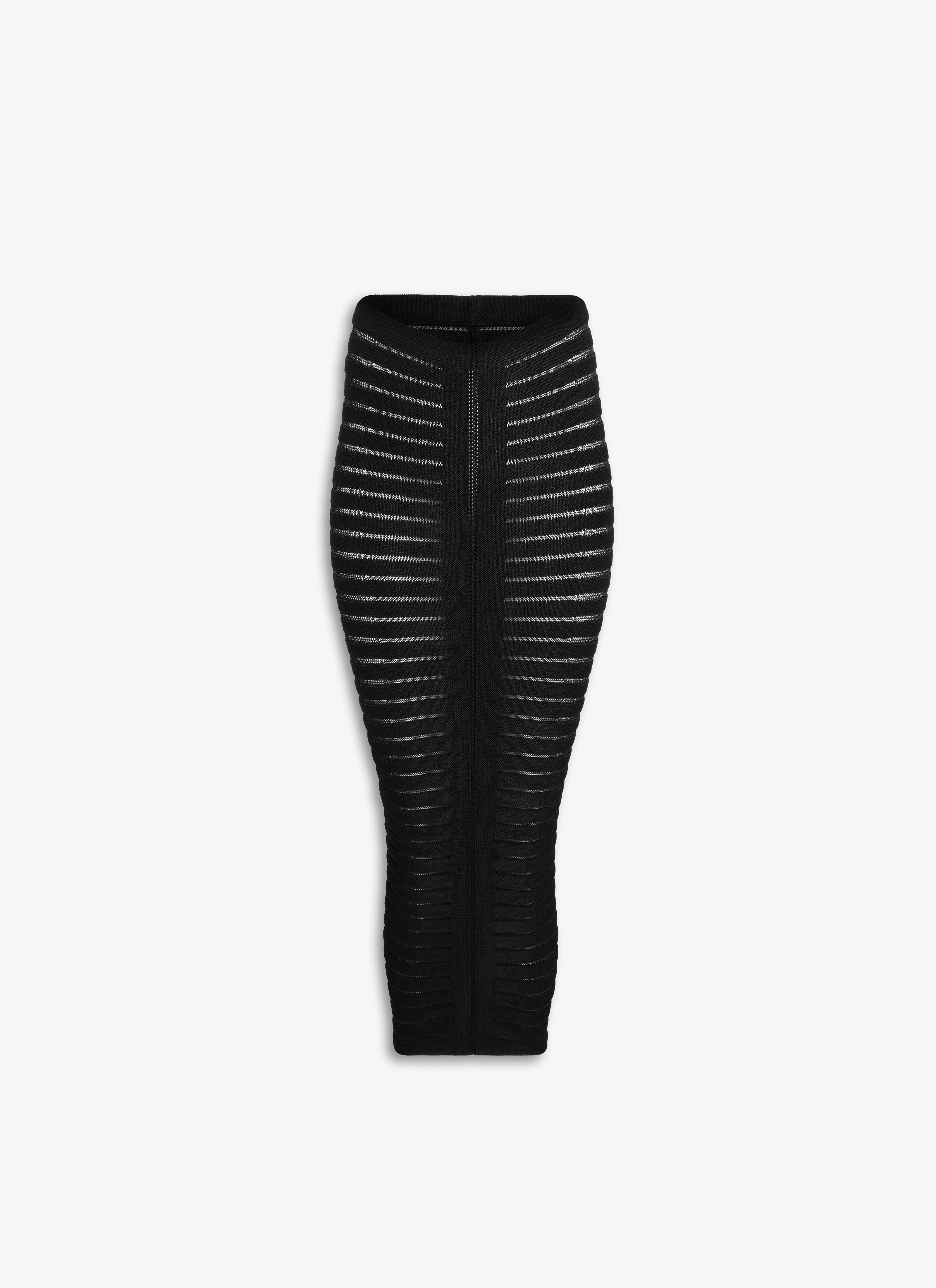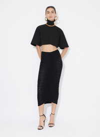 Skeleton pencil skirt Figure hugging contrasted sheer and opaque knit Knitted in a medium weight visecose and corded viscose Made in Italy DETAILS COMPOSITION: 61% VISCOSE, 27% POLYAMIDE, 11% COTTON, 1% POLYURETHANE PRODUCT REFERENCE: AA9J22206M751 - 995