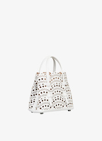 Micro tote bag, vienne pattern inspired by precious lace and moucharabieh architectural openwork, snap-fastening gusseted sides that expand, galvanised silver hardware, detachable strap, hand or shoulder carry. Dimensions (cm): l 16 x h 14 x d 8. Made in italy DETAILS COMPOSITION: 100% CALFSKIN LINING: 100% LAMBSKIN PRODUCT REFERENCE: AA1S06716C0A29 - 010