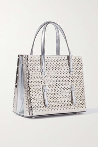 EDITORS'NOTES Alaïa fans will instantly recognize this 'Mina 20' bag - the laser-cut 'Vienne' pattern is a house signature. It's crafted from structured leather that's mirrored to a high shine sure to turn heads. Gusseted side panels can be expanded to accommodate your essentials, while the detachable shoulder strap can be adjusted to your preferred length. SIZE & FIT This item’s measurements are: - Handle Drop: 20cm / 7.9in - Depth: 8cm / 3.1in - Height: 9cm / 3.5in - Width: 21cm / 8.3in DETAILS & CARE - Silver mirrored-leather (Calf) - Open top - Weighs approximately 0.4lbs/ 0.2kg