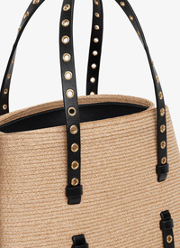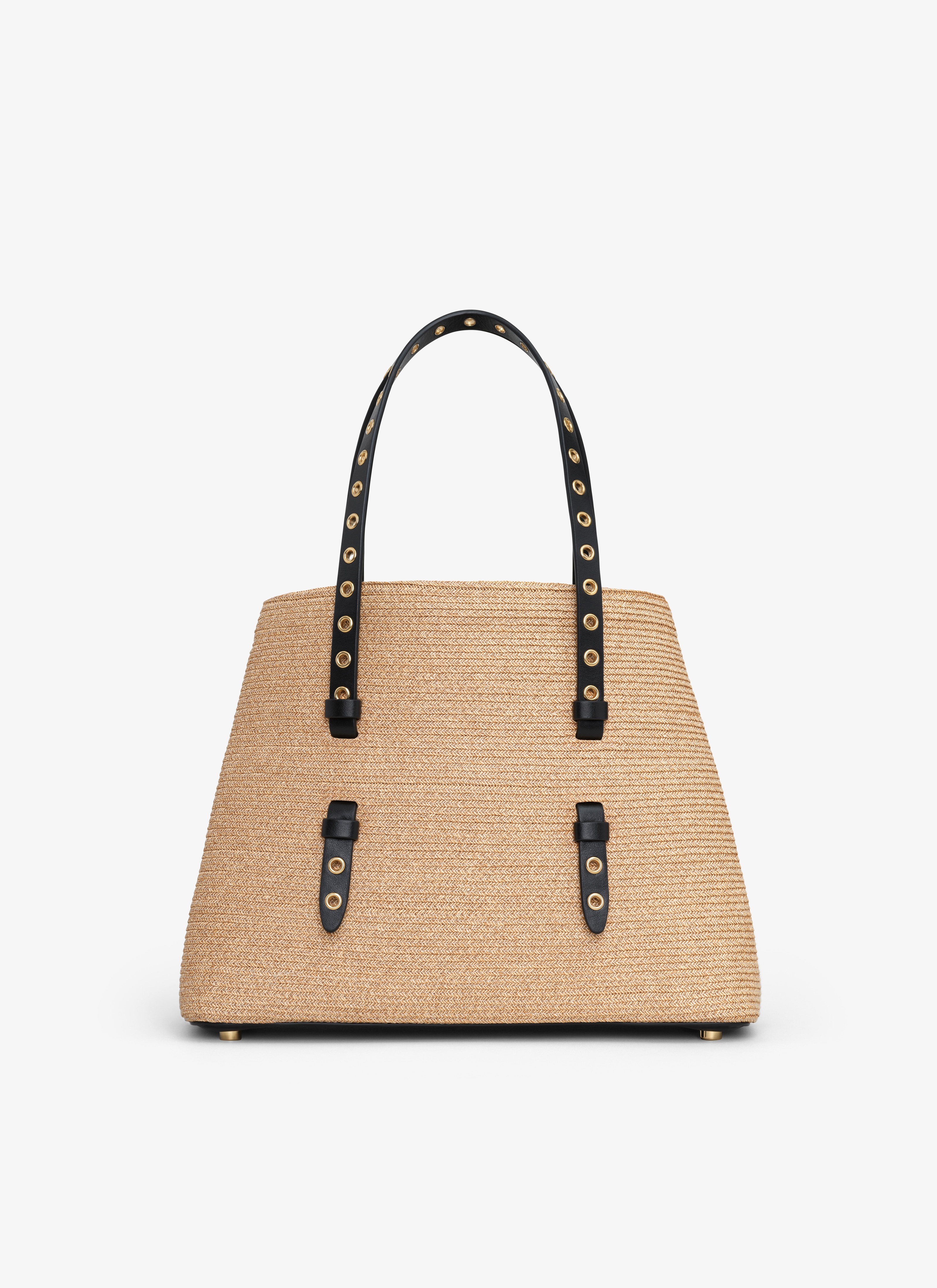 Medium tote bag Snap-fastening gusseted sides that expand Detachable leather pouch Detachable strap Hand or shoulder carry Dimensions (cm) : L 25 X H 20 X D 12 Made in Italy DETAILS COMPOSITION:91% PAPER 9% POLYESTER SECONDARY MATERIAL:50% BRASS 50% CALF LEATHER MAIN LINING:100% LAMBSKIN PRODUCT REFERENCE: AA1S06725CA291 - 113