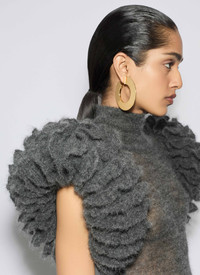 MOHAIR KNIT SCULPTURAL RUFFLE BODYSUIT