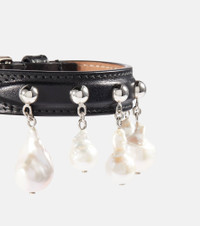 This Alaïa bracelet is made in Italy from black calfskin leather. The edgy design features mother-of-pearl embellishments and a silver-toned buckle. Product Details - Pendant: faux pearls - Material: leather - Closure: buckle fastening - Made in Italy - Designer color name: Noir - Item number: P00752494 Size & Fit - Adjustable length - Width 1,5cm-0.5" - Pendant length 3cm-1" - Pendant width 1,5cm-0.5" - Min. length 17cm-6.5" - Max. length 20cm-8"