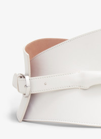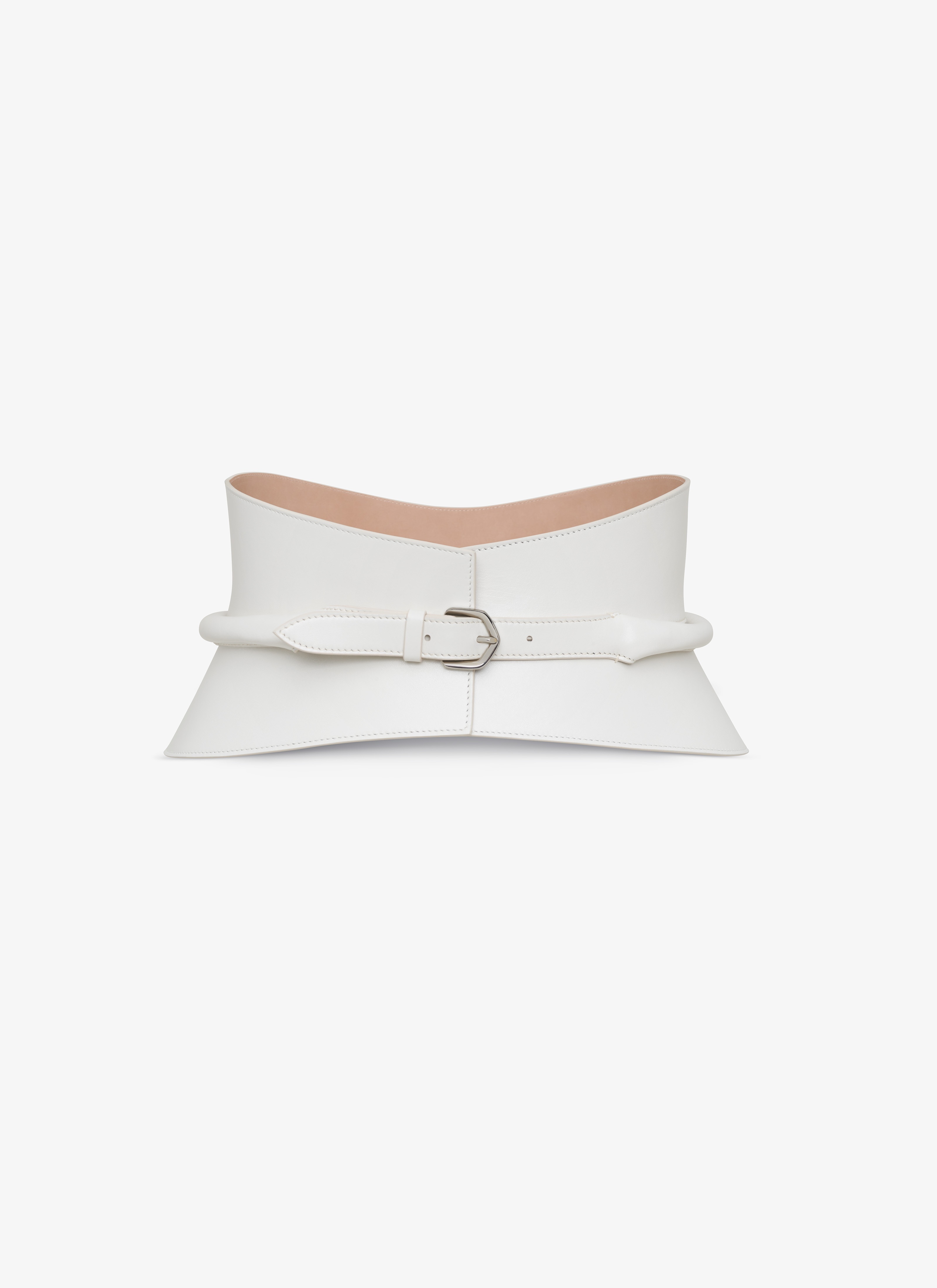 modern leather bustier belt a thin tubular belt marks the waist in the center "a" buckle designed exclusively for alaia shaped to adjust perfectly to the waist dimensions (cm): h 13,5 made in italy DETAILS COMPOSITION: 100% CALFSKIN LINING: 100% LAMBSKIN PRODUCT REFERENCE: AA1C097MCA223 - 030