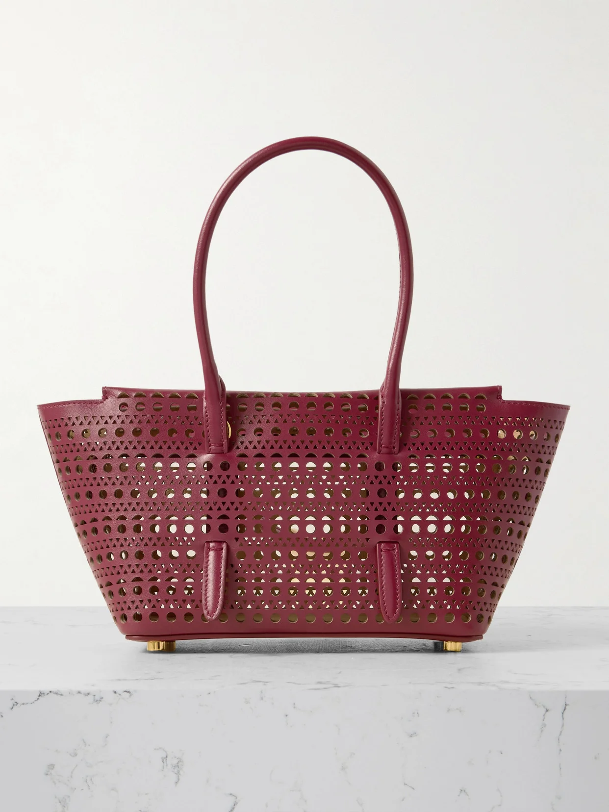 This version of Alaia's 'New Mina' tote may be scaled down to smaller proportions, but it's still roomy enough to carry the everyday essentials - think phone, cardholder and a water bottle. It's been crafted in Italy from leather and laser-cut with the maison's signature 'Vienne' pattern. The long, tubular straps will sling comfortably over your shoulder.
