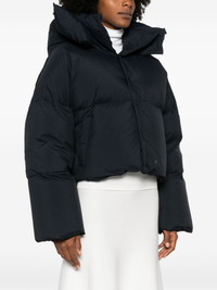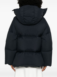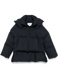 black down-feather filling padded design front press-stud fastening quilted detachable hood long sleeves two side slit pockets press stud-fastening side vents high-low hem DETAILS Composition Synthetic Polyamide100 % Model ID AA9M03706T682-995