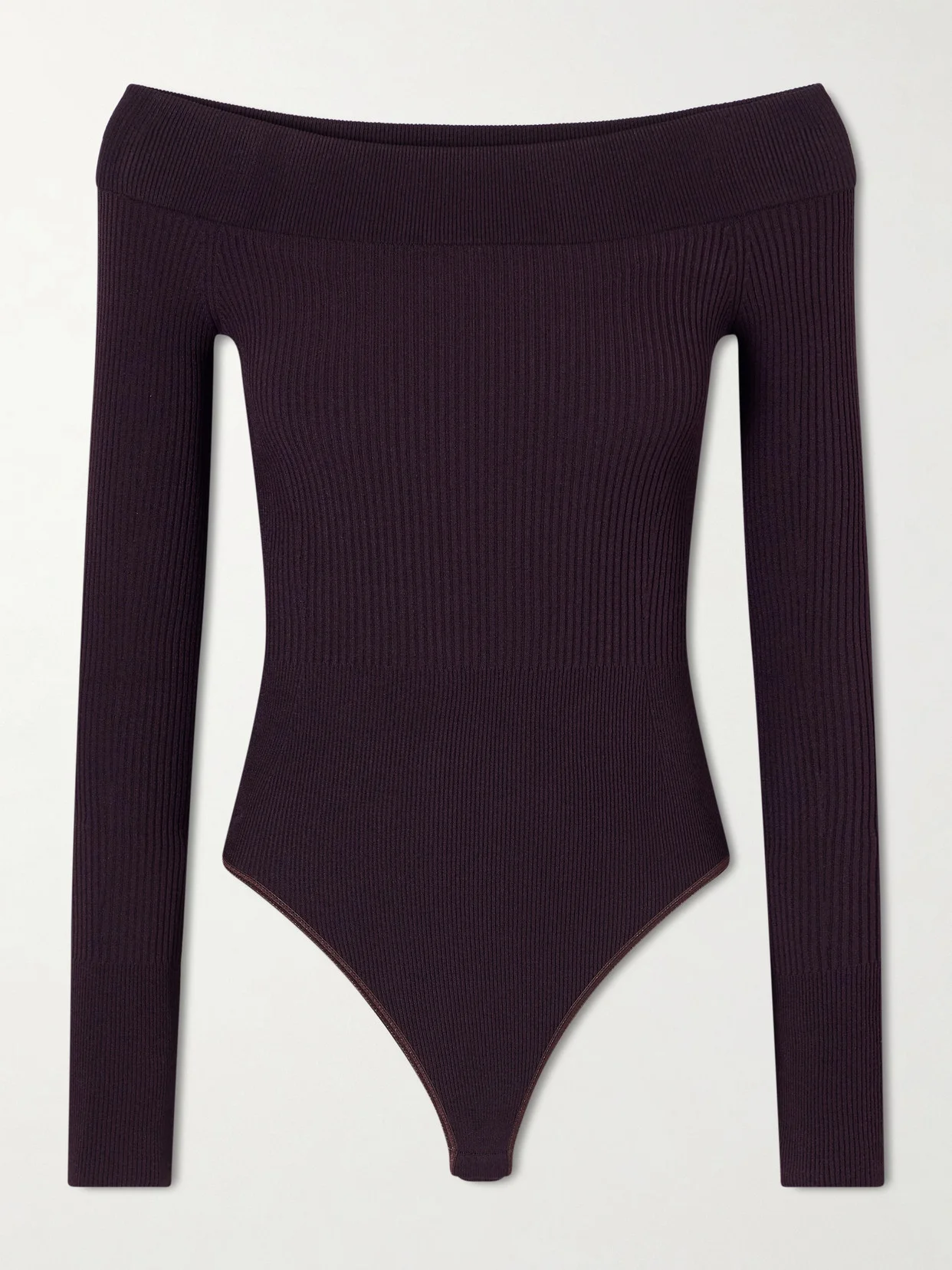 Off-the-shoulder Ribbed-knit Bodysuit