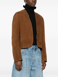 open-front leather jacket Highlights - Hazelnut brown - Open front - Long sleeves - Front welt pocket - Straight hem Imported Composition Goat Skin 100% SIZE & FIT Model measurements Height 5 ft 10 in(1.77 m) Bust/Chest 32.28 in(82 cm) Hips 35.03 in(89 cm) Waist 25.19 in(64 cm) Washing instructions Read Manufacturer Guidelines