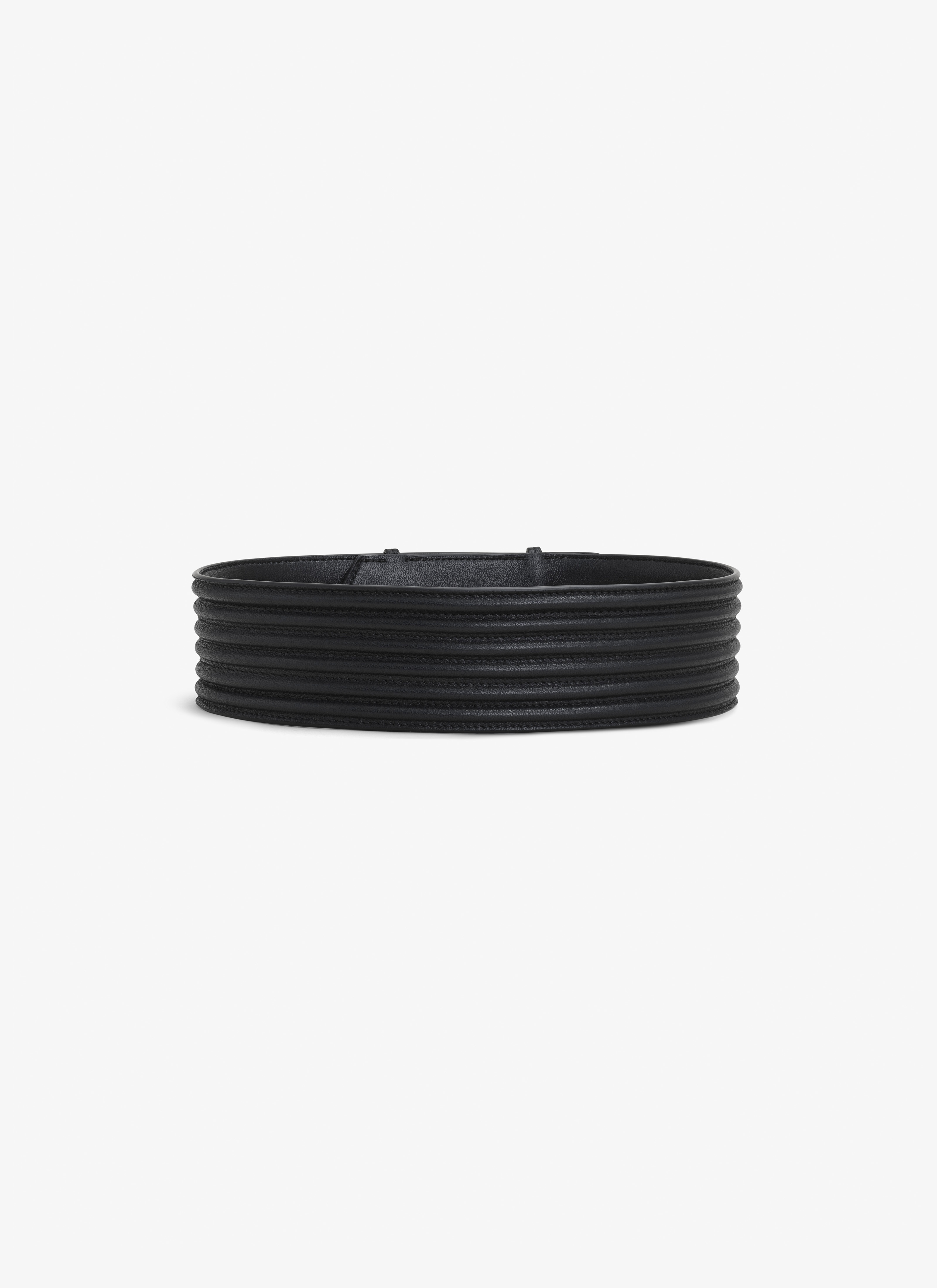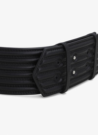padded belt horizontal padding creating texture "a" pointy end adjustable closing system with 2 collar buttons dimensions (cm) : h 6,5 DETAILS COMPOSITION: 100% CALFSKIN LINING: 100% CALFSKIN PRODUCT REFERENCE: AA1C109MCA502 - 999