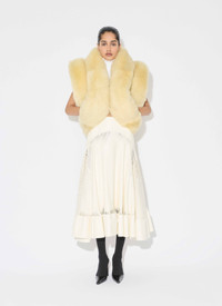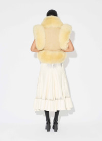 Padded sleeveless shearling vest Exaggerated lapel and shoulders Round cocooning shape Made in Italy DETAILS MAIN MATERIAL : 100% SHEEP LEATHER PRODUCT REFERENCE : AA9M1103L028B-113