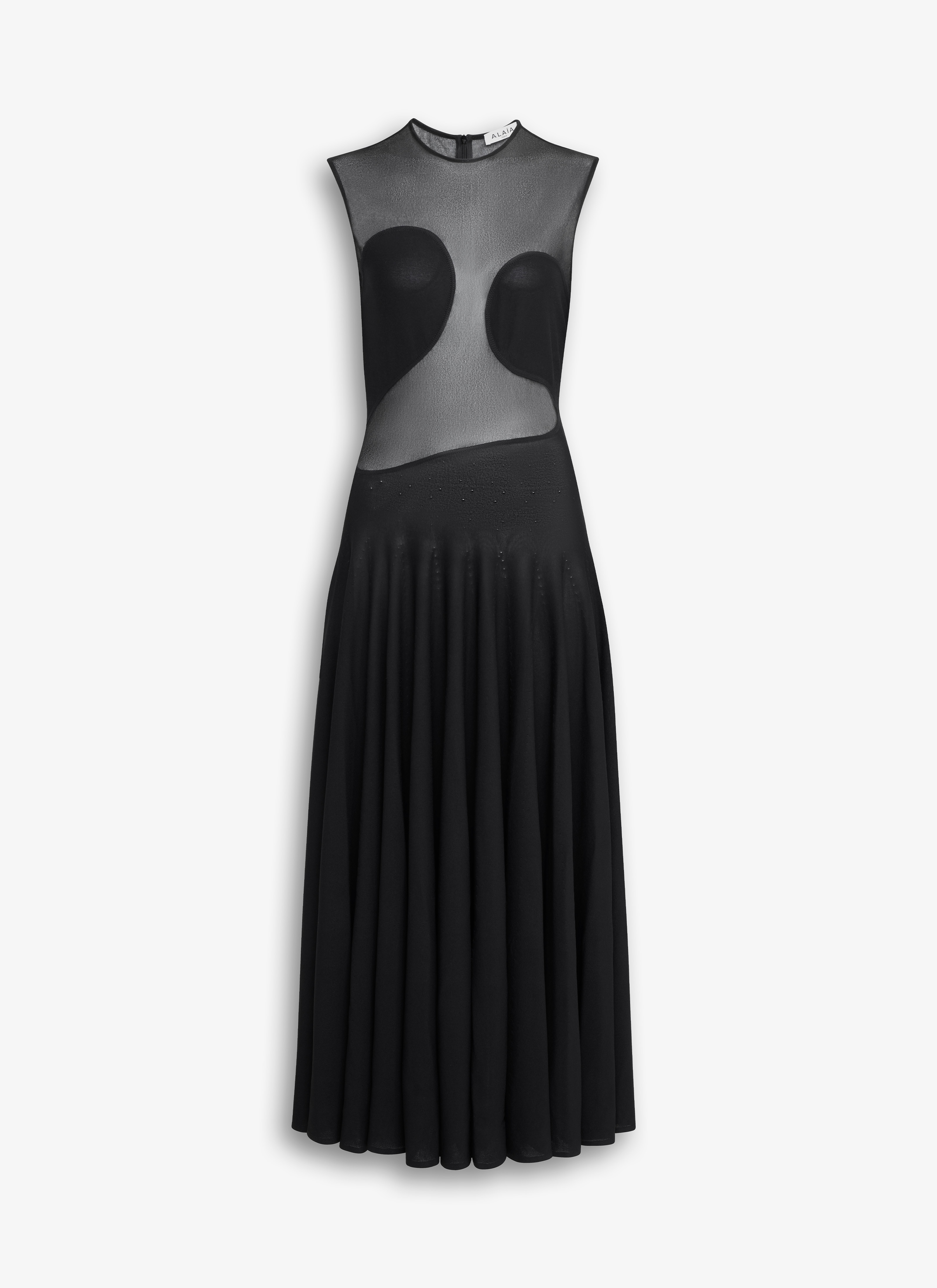 Long dress in viscose and silk knit Sleeveless, fitted bust, flare skirt, ankle length Body lines emphasized by inlay work Made in Italy DETAILS MAIN MATERIAL: 94% VISCOSE 6% POLYESTER SECONDARY MATERIAL:: 100% SILK PRODUCT REFERENCE: AA9R2653K061A - 995