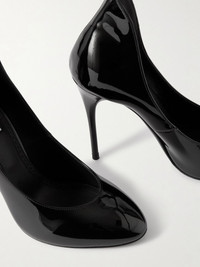 Alaia's pumps are designed with a low-cut vamp and an elongated back for a leg-lengthening effect. They've been made in Italy from sleek patent-leather and rest on stiletto heels. Size & Fit - Fits true to size, take your normal size - Only available in full sizes, go up to the nearest whole size if you take a half size - Italian sizing Details & Care - Heel measures approximately 110mm/ 4.5 inches - Black patent-leather - Slip on