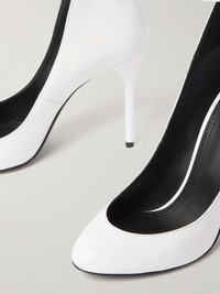 EDITORS'NOTES With their sculptural shape, Alaïa's pumps need little styling to make a statement. They're crafted from glossy patent-leather with an elongated back and have a deeply cut vamp. The sleek ankle strap offers a secure fit for the 90mm lift. SIZE & FIT - Fits true to size, take your normal size - Only available in full sizes, go down to the nearest whole size if you take a half size - Italian sizing DETAILS & CARE - Heel measures approximately 90mm/ 3.5 inches - White patent-leather (Calf) - Buckle-fastening ankle strap