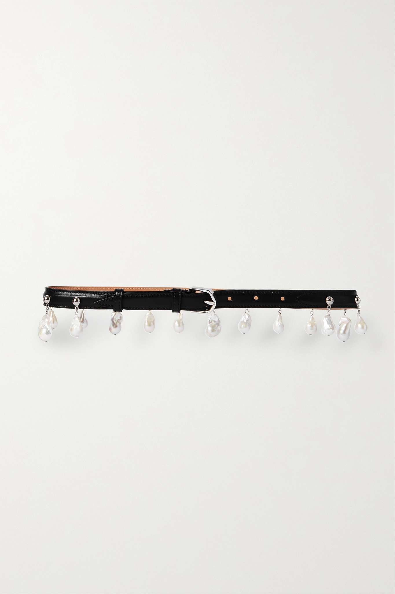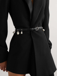 EDITORS'NOTES Romantic and elegant, Alaïa's belt is a refined finishing touch for so many different outfits. It's made from smooth leather and embellished with delicate pearls that will swish beautifully as you walk. Wear yours to cinch the waist of a dress or coat. SIZE & FIT Alaia follows its own size guide, please refer to below: - 60 = FR 32/ IT 36/ US 0/ UK 4/ XXSmall - 65 = FR 34/ IT 38/ US 2/ UK 6/ XSmall - 70 = FR 36/ IT 40/ US 4/ UK 8/ Small - 75 = FR 38/ IT 42/ US 6/ UK 10/ Medium - 80 = FR 40/ IT 44/ US 8/ UK 12/ Large - 85 = FR 42/ IT 46/ US 10/ UK 14/ XLarge - 90 - FR 44/ IT 48/ US 12/ UK 16/ XXLarge - 95 = FR 46/ IT 50/ US 14/ UK 18/ 3XLarge - 100 = FR 48/ IT 52/ US 16/ UK 20/ 4XLarge - 105 = FR 50/ IT 54/ US 18/ UK 22/ 5XLarge - Designed to be worn on the waist - Measurements can be found in the link below DETAILS & CARE - Black leather (Calf) - Buckle fastening - Pearl: China
