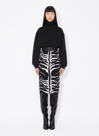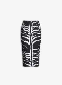 animal knit pencil skirt engineered to slash and reveal skin at the hips and waist knitted in animal jacquard made in italy DETAILS COMPOSITION: 67% VISCOSE, 33% POLYESTER WAISTBAND: 59% VISCOSE, 29% POLYESTER, 9% POLYAMIDE, 3% ELASTANE PRODUCT REFERENCE: AA9J21795M842 - 009