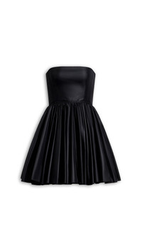 DETAILS Strapless peplum dress in shiny nylon Mini length, sleeveless with removable straps Fitted through the bodice with high waist line Invisible side zip closure Made in Italy MATERIALS MAIN MATERIAL: 100% POLYAMIDE PRODUCT REFERENCE: AA9R2886W158C-995