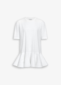 Peplum t-shirt in cotton jersey Ribbed crew-neck, short sleeves, flared hem Loose fit Made in italy DETAILS MAIN MATERIAL: 100% COTTON COLLAR: 95% COTTON 5% ELASTANE PRODUCT REFERENCE: AA9I0003J010A - 000