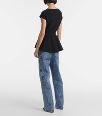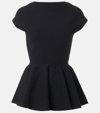 Honoring Azzedine Alaia’s legacy, the maison’s sculptural yet wearable collections hold an artful balance that only the most skilled designers can achieve. Case in point – this top is shaped with a peplum hem for a striking silhouette. Product Details - Material: 79% viscose, 14% polyamide, 5% polyester, 2% elastane - Care instructions: dry clean - Made in Italy - Designer color name: Noir Alaia - Item number: P01018784 Size & Fit - True to size - Cinched waist - Stretchy fabric - Falls to the hip - The model seen in the picture is 178cm-5'10" and wearing a size FR 36