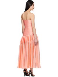 Knit stretch viscose-blend maxi dress. · Strapless construction · Concealed anti-slip silicone band at straight neck · Godet panels at asymmetric dropped waist · Unlined Supplier color: Peche 84% viscose, 15% polyamide, 1% polyurethane. Made in Italy 251483F055007