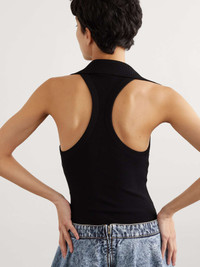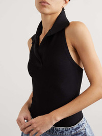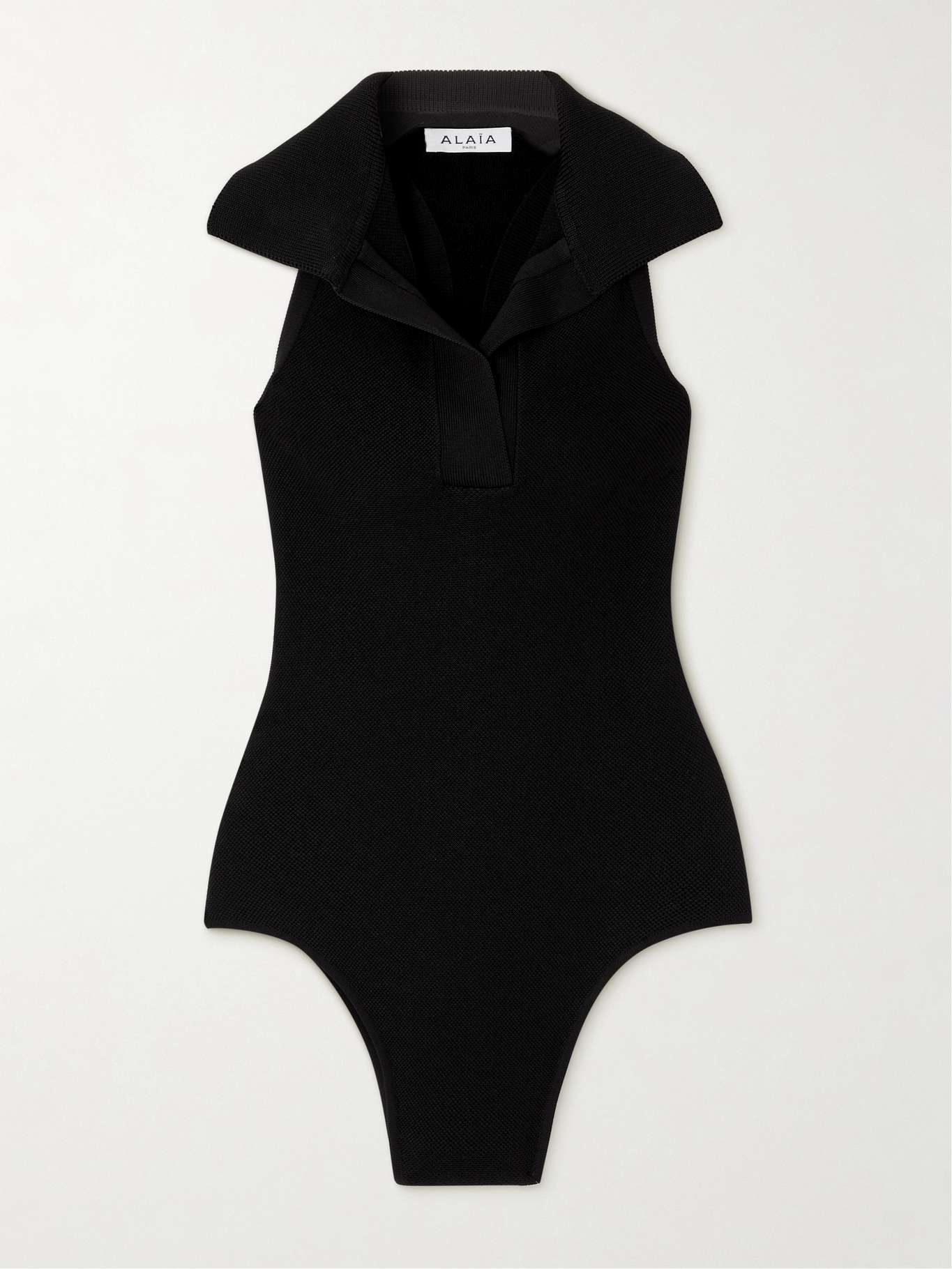 EDITORS'NOTES Alaïa's bodysuit will form the foundation of so many outfits, both casual and dressy. It's made from close-fitting piqué and has a sporty polo collar and racer back. Wear yours with everything from midi skirts to tailored pants. SIZE & FIT - Fits true to size, take your normal size - Designed for a close fit - Minimal brief coverage - Mid-weight knit - Model is 175cm/ 5'9" and is wearing a FR 34 DETAILS & CARE - Black piqué - 69% viscose, 23% polyamide, 6% nylon, 2% elastane