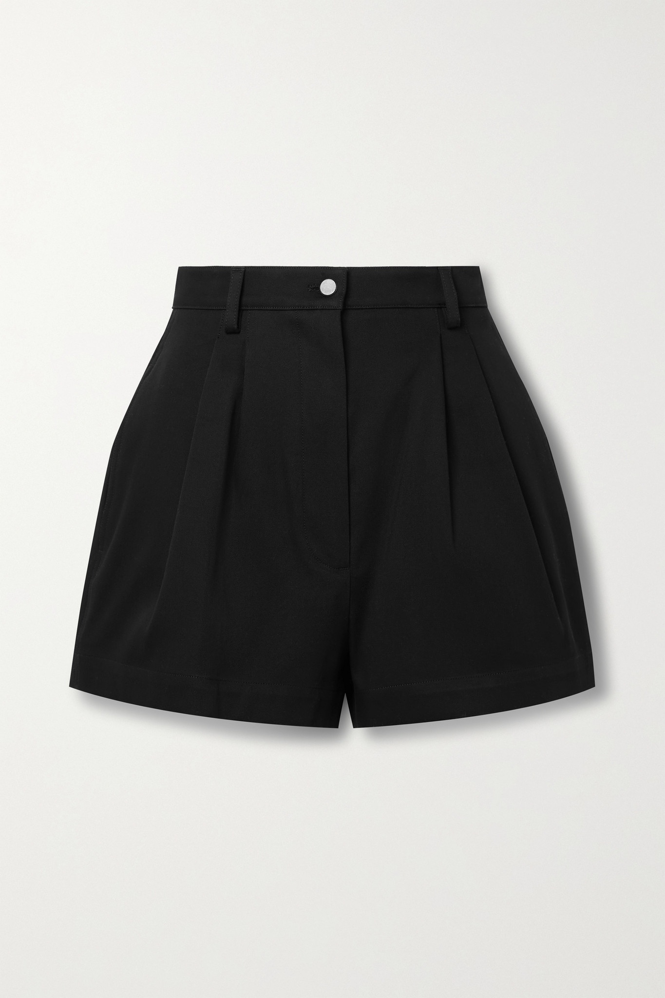 EDITORS'NOTES Alaïa's high-waisted shorts are tailored from cotton-gabardine that's gently pleated to accentuate the slightly loose shape. Smart and streamlined, they're perfect for both casual and formal looks - tuck a fitted top into yours, or team them with a blazer or vest. SIZE & FIT - Fits small to size, take one size larger than normal - Those with a curvy figure may wish to take a further size up - High-rise, cut for a slightly loose fit - Slightly short in length - Mid-weight, non-stretchy fabric - Model is 175cm/ 5'9" and is wearing a FR 38 DETAILS & CARE - Black cotton-gabardine - Button and concealed zip fastening at front - 100% cotton - Dry clean Small to size. See Size & Fit notes.