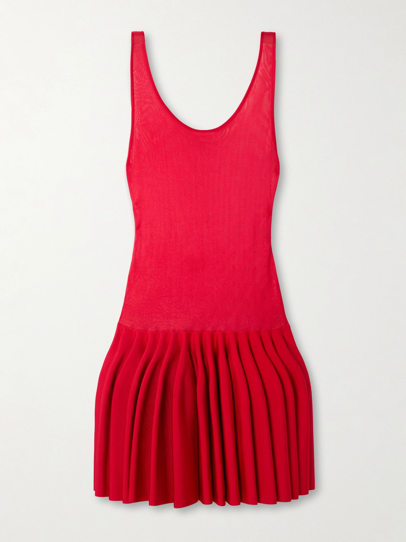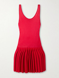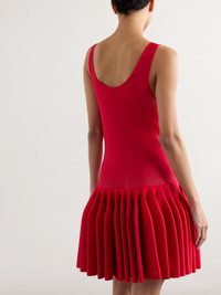 Alaia's collections are like covetable works of art – the Winter Spring '25 collection was even presented inside the Solomon R. Guggenheim Museum. This dress has a smooth form-fitting jersey bodice and a dropped waist, which plumes into a pleated stretch-knit skirt. Wear it with the label's 'Escarpin' pumps. Size & Fit - Fits true to size, take your normal size - Designed for a slim fit - Dropped waist - Mid-weight knit - Model is 175cm/ 5'9" and is wearing a FR 36 Details & Care - Red jersey and stretch-knit - Slips on - Fabric1: 92% viscose, 6% polyamide, 2% elastane; fabric2: 100% viscose